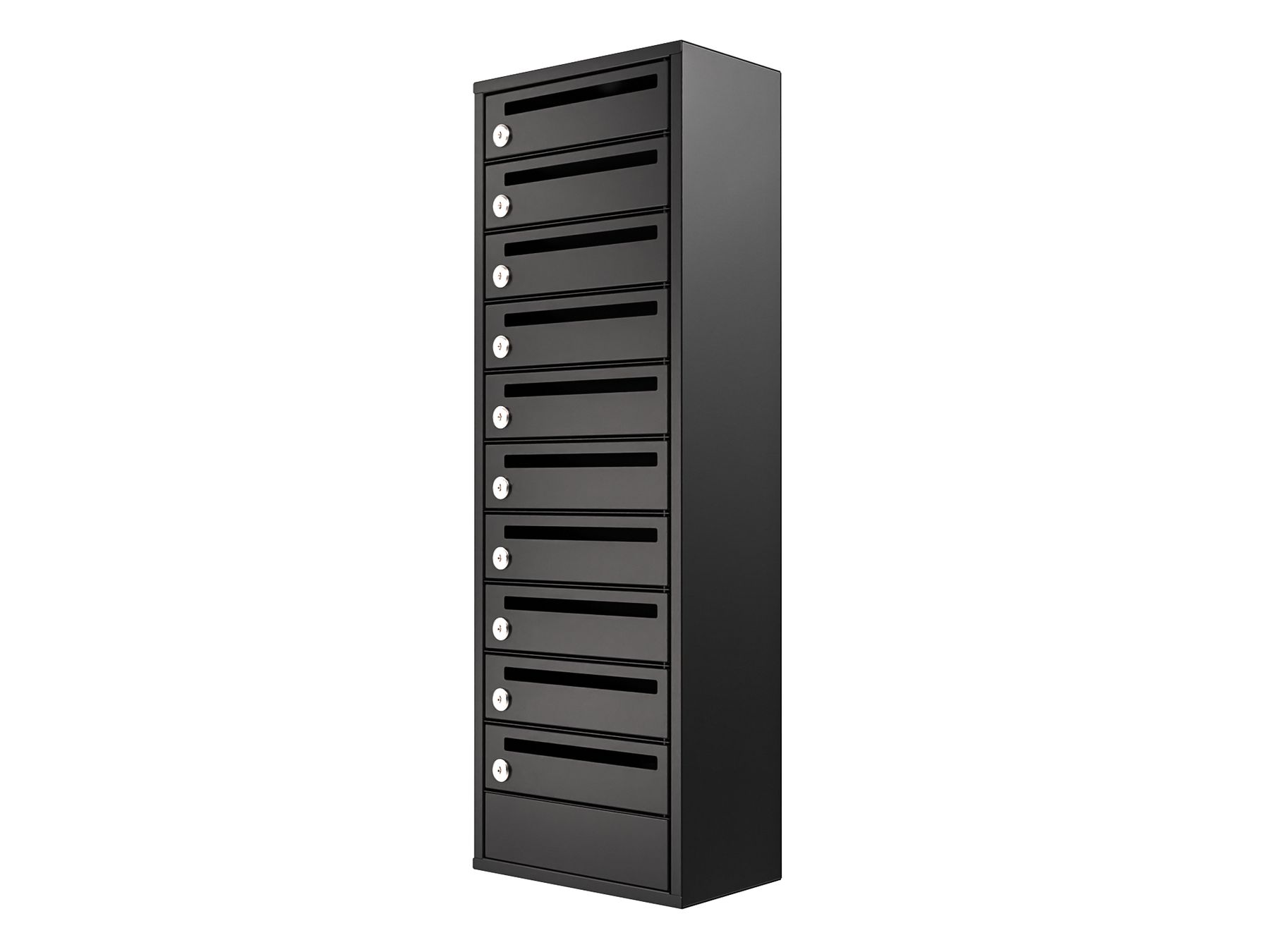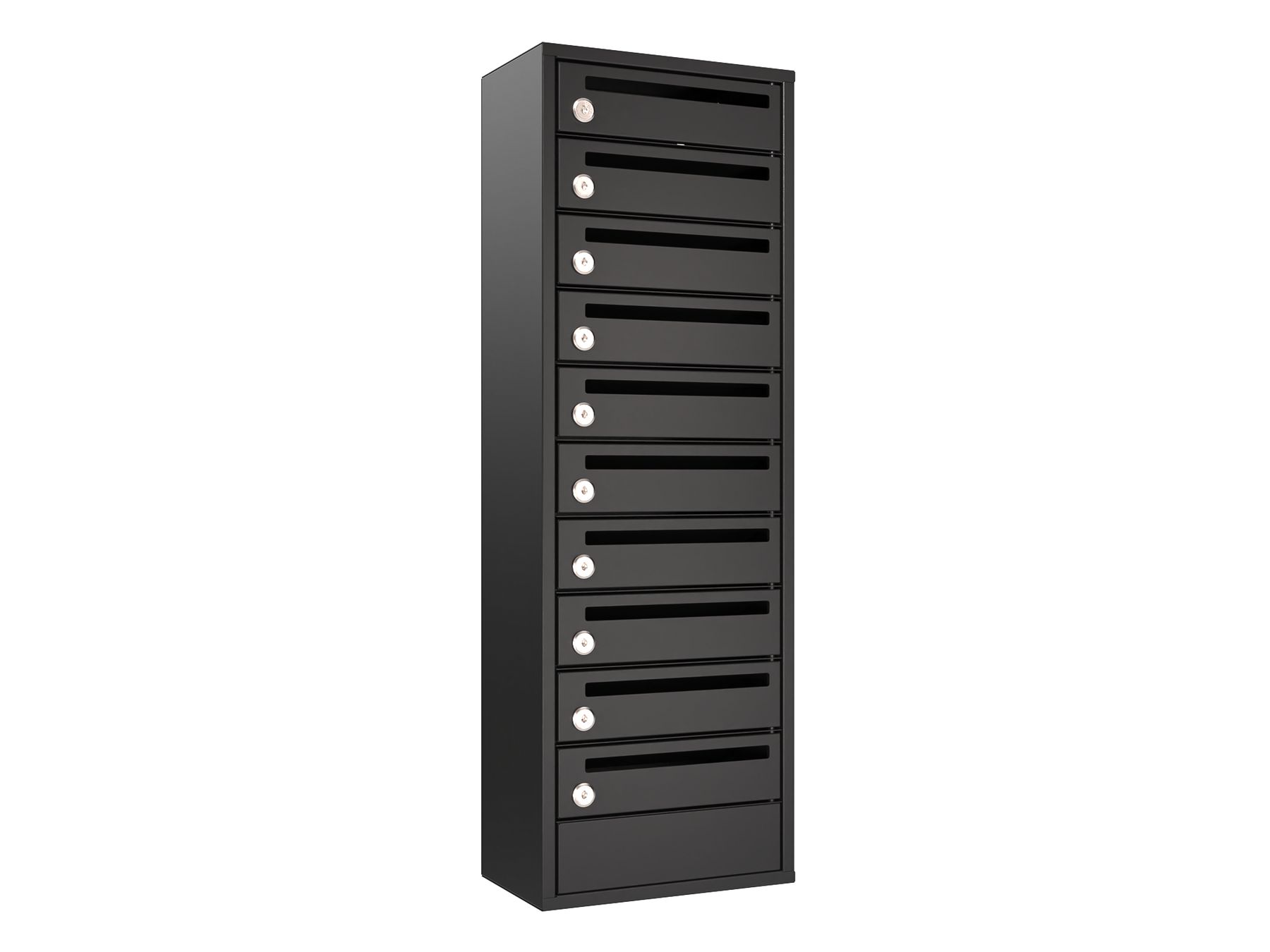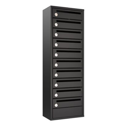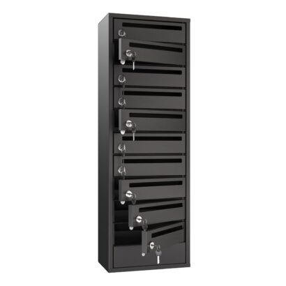 Характеристики корпуса: Ящик прямоугольной формы с прямым дном. Габариты ячейки 340(Ш)х200(Г)х100(В). Количество ячеек в одном ящике 3-14 + глухая ячейка. (Оснащены надежными петлями, с открыванием дверцы слева направо, для удобства надежные замки уже встроены в дверцы, и комплектуются 2мя ключами. Загрузка корреспонденции осуществляется в щелевое отверстие в дверце.
